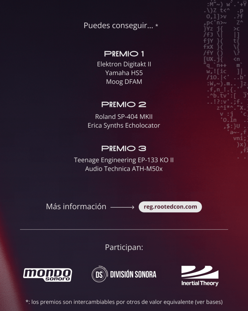 RootedCON presenta la tercera edición del concurso de composición Hack the Music, con División Sonora, Mondo Sonoro e Inertial Theory como colaboradores y jurado. Los participantes del mismo tendrán hasta el próximo 25 de febrero para enviar sus creaciones y tener la oportunidad de componer la banda sonora oficial del evento de ciberseguridad más grande a nivel nacional, así como de ganar una serie de premios de fabricantes como Elektron, Erica Synths o Roland.